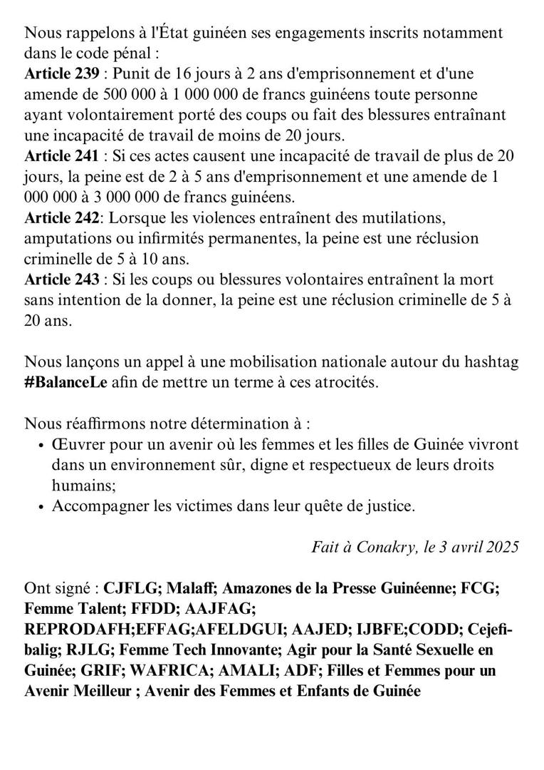 La récente révélation de la chanteuse Djelykaba Bintou est la goûte d’eau qui a fait déborder le vase. D’où, les organisations féminines guinéennes ont décidé de se mobiliser contre les violences conjugales. Elles appellent à une mobilisation nationale pour dénoncer toutes violences conjugales à travers le hashtag #BalanceLe.