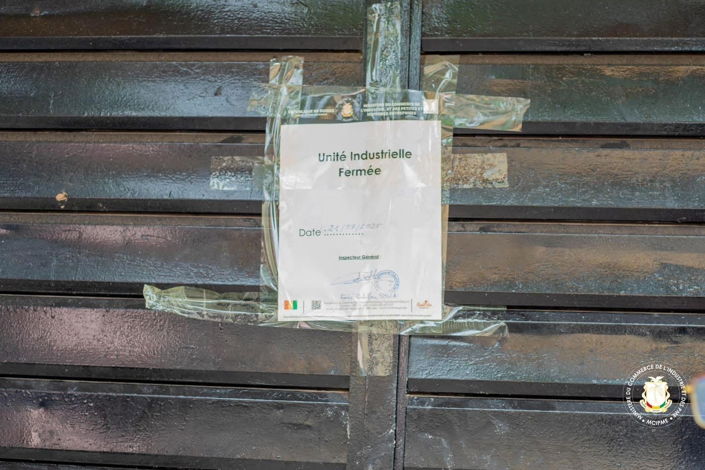 Au total, sept (7) unités industrielles, réparties sur cinq (5) sites différents, ont été fermées à Dixinn. Il s’agit de :