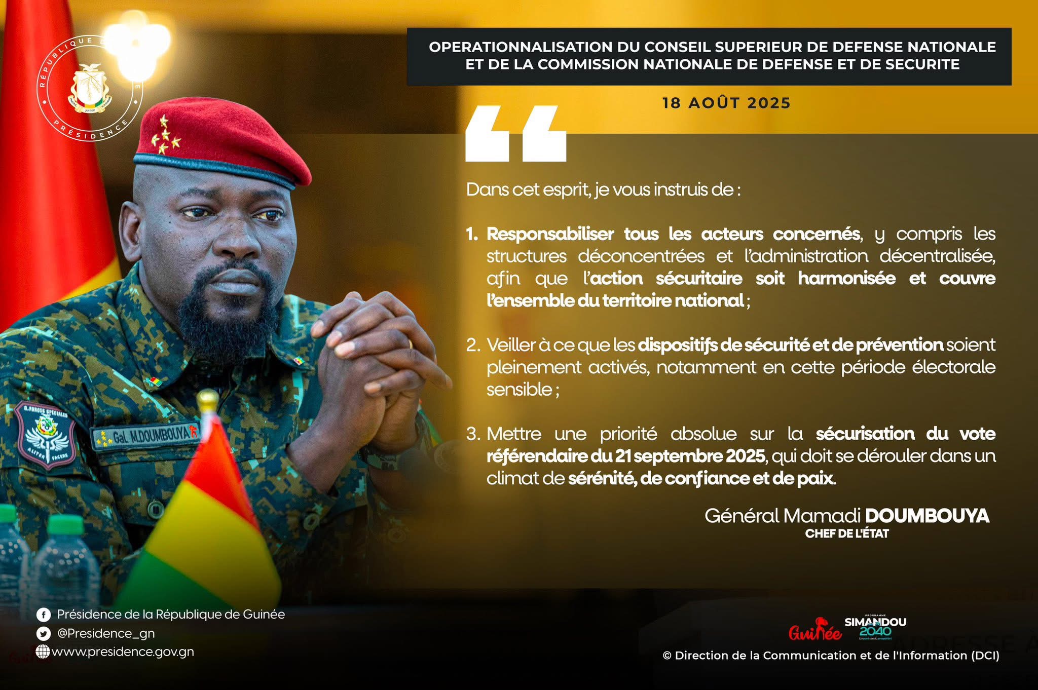 Ci-dessous le contenu des instructions du Général Mamadi Doumbouya :
