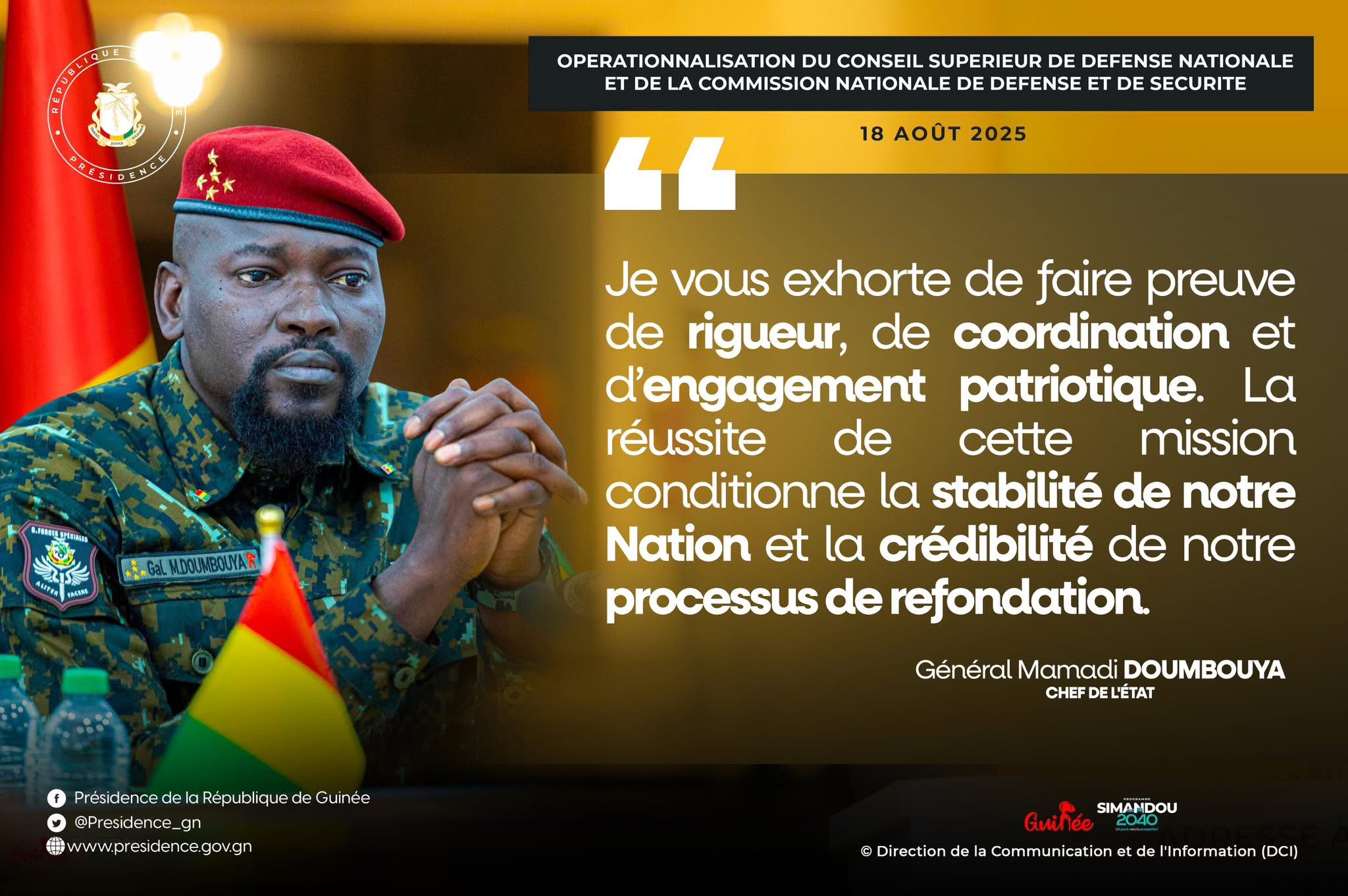 Au cours de la toute première réunions du Conseil supérieur de défense nationale et de la commission nationale de défense et de sécurité, tenue le 18 août dernier au palais Mohamed V, le Chef de l’Etat, général Mamadi Doumbouya, a instruit à ce que cet instrument hautement stratégique soit rapidement opérationnel.