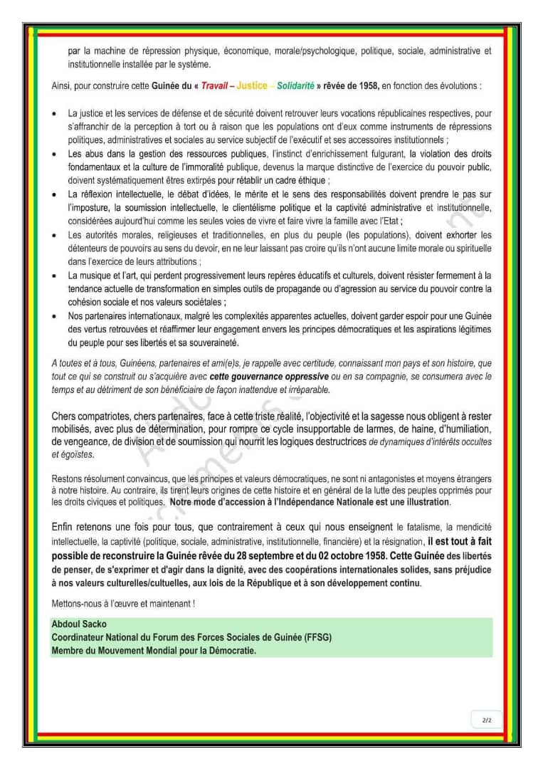 Abdoul Sako brise enfin le silence : « l’objectivité et la sagesse nous obligent à rester mobilises, avec plus de determination, pour rompre ce cycle insupportable »