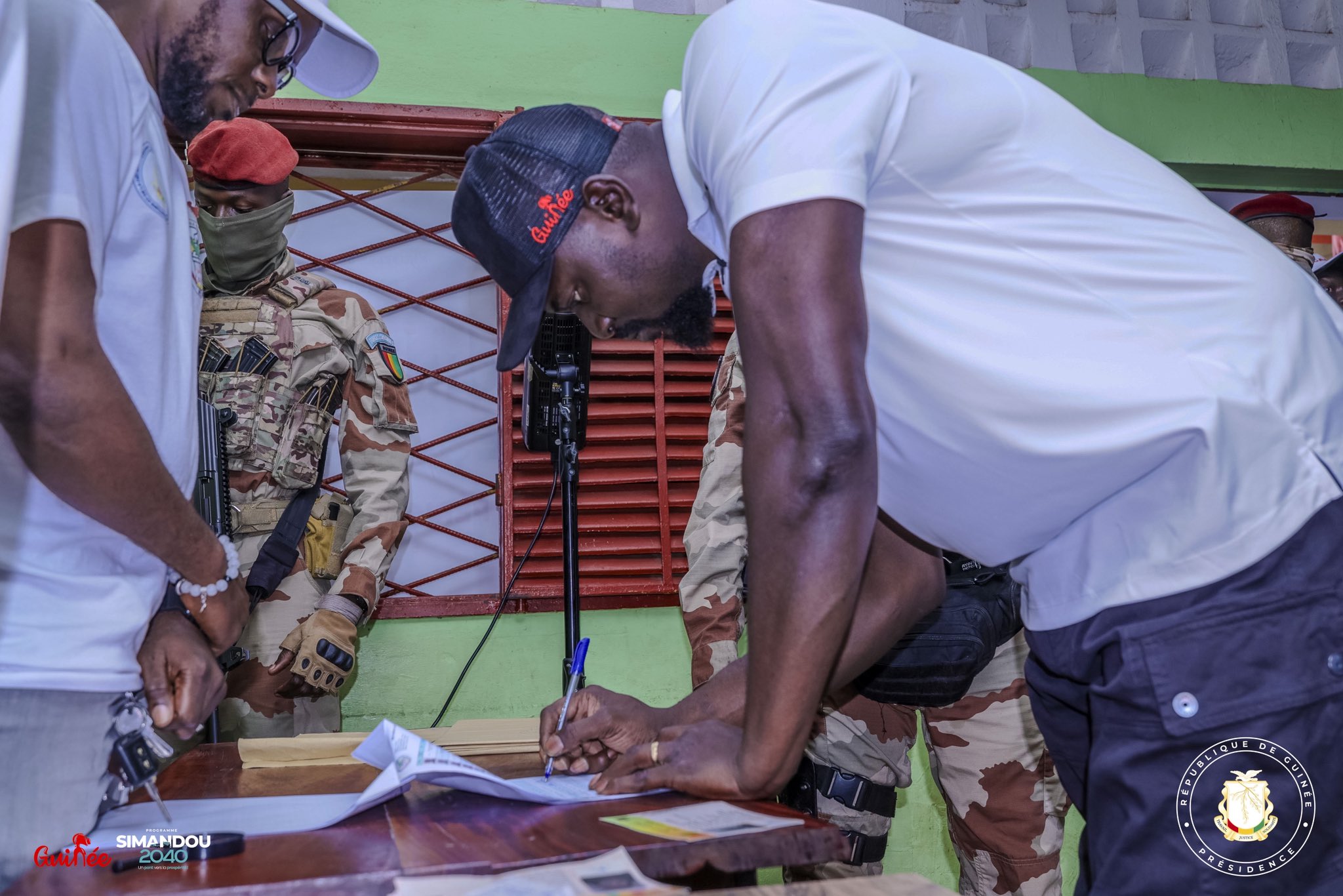 Un acte fortement symbolique a marqué ce lancement : le Président de la République, Son Excellence le Général Mamadi DOUMBOUYA, s’est rendu personnellement à l’école des sourds-muets de Boulbinet, lieu de son bureau de vote, pour retirer sa carte d’électeur. Ce geste hautement civique consacre l’ouverture officielle de l’opération.