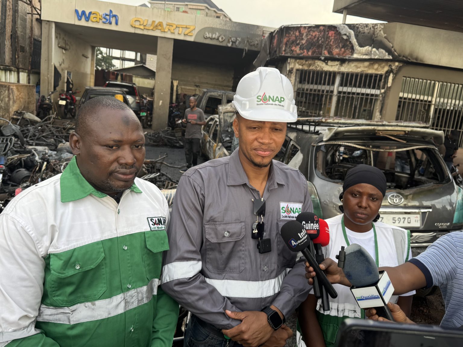 « Nous avons été informés à 4 heures du matin par le chef de la station. Immédiatement après, nous avons remonté l’information à la hiérarchie, qui nous a donné des instructions fermes de nous rendre sur le site pour enquêter sur l’incident. Sur place, nous avons trouvé les sapeurs-pompiers, la gendarmerie et la police, tous engagés pour maîtriser l’incendie. Les dégâts matériels sont importants, mais heureusement, il n’y a pas eu de pertes en vies humaines. L’incendie aurait démarré à partir des bouteilles de gaz et des appareils situés à proximité, ce qui a alimenté la flamme », a-t-il expliqué.