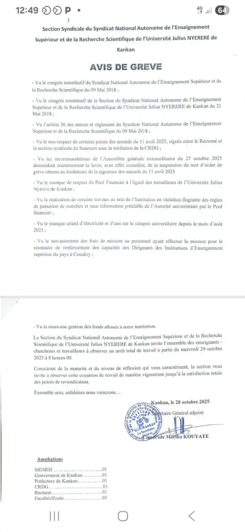 Ces syndicalistes aui ont depisé leur avis de grève le mardi 28 octobre 2025, accusentle rectorat de non-respect des engagements pris et des dysfonctionnements persistants au sein de l’institution.