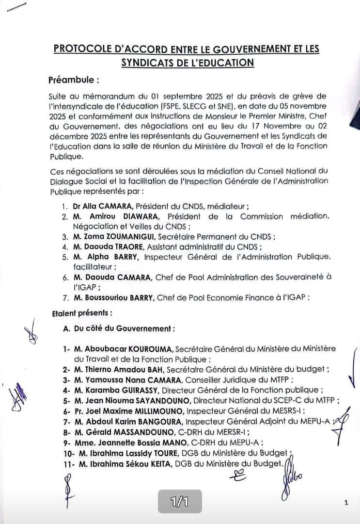 Après cinq jours de dialogue constructif et 16 heures de négociations, l’intersyndicale de l’éducation et les représentants du gouvernement guinéen sont parvenus à un accord portant sur la carrière et les primes des enseignants.
