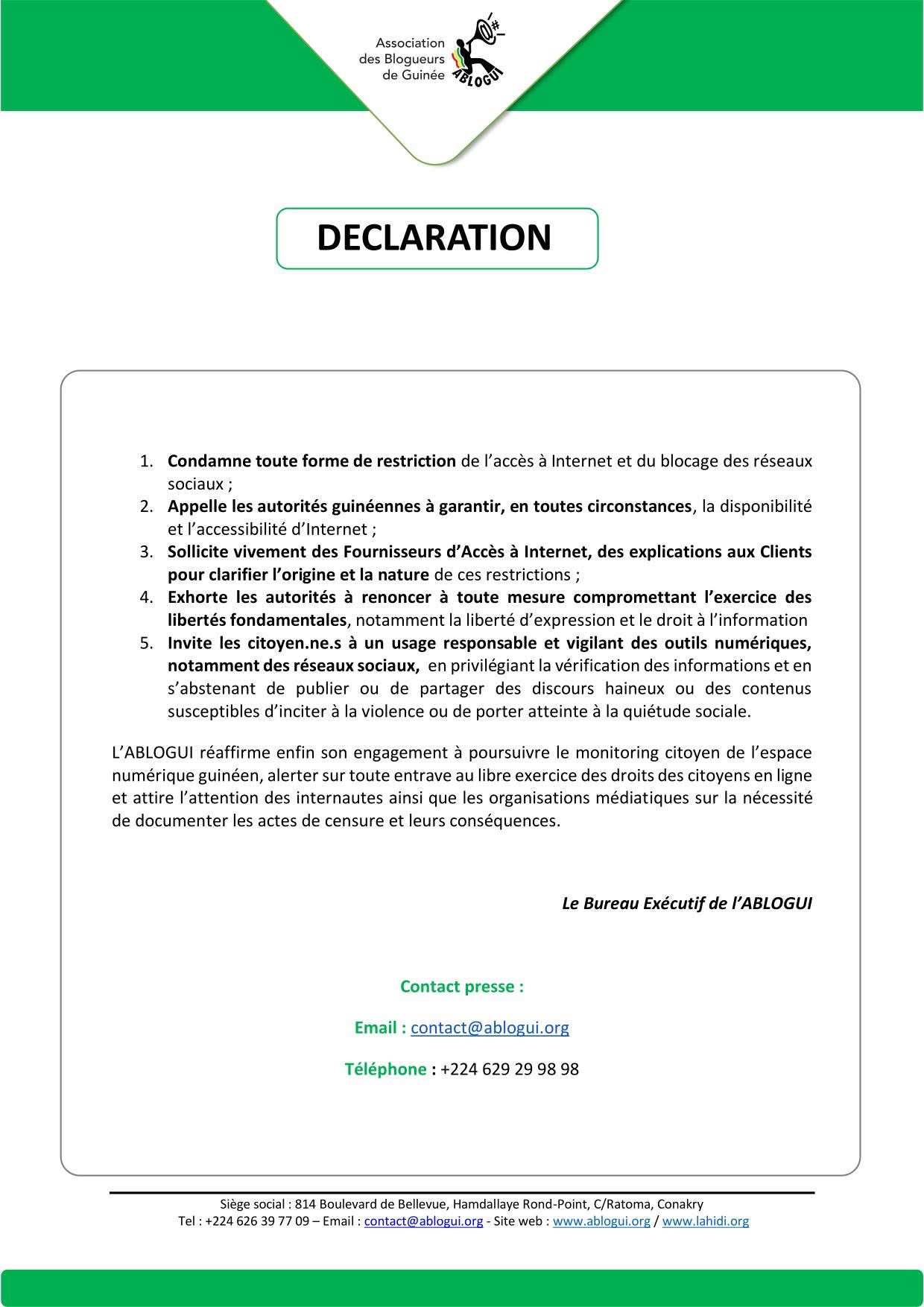 Perturbation de l’accès a internet : l’ABLOGUI denonce la pratique et exprime ses préoccupations