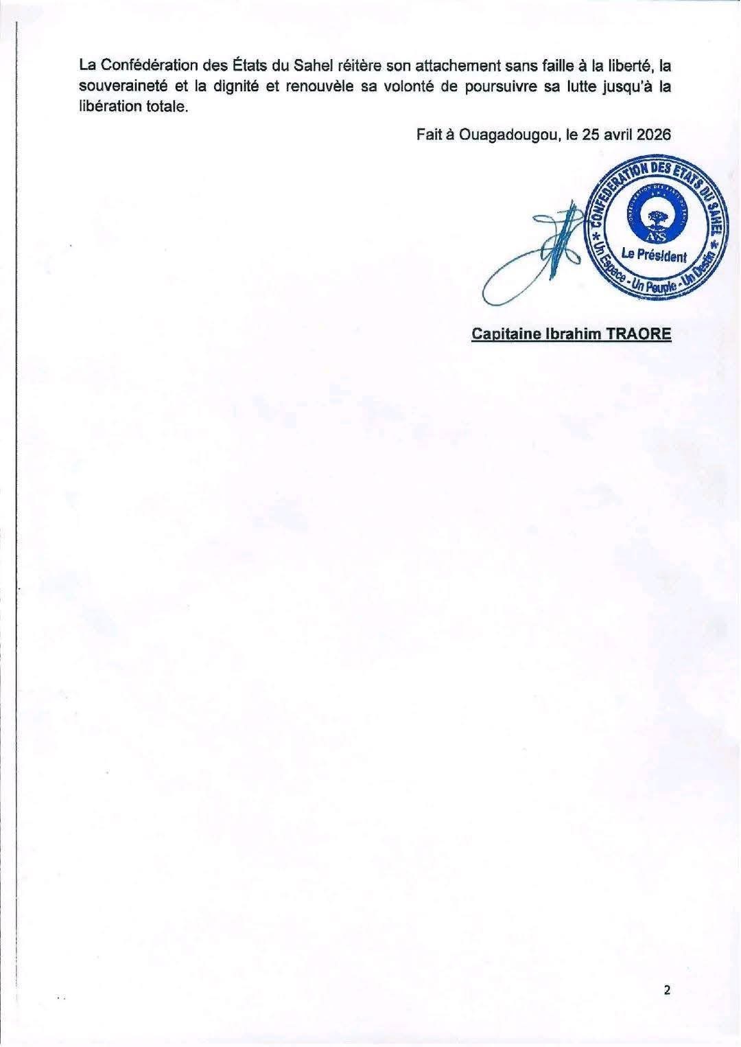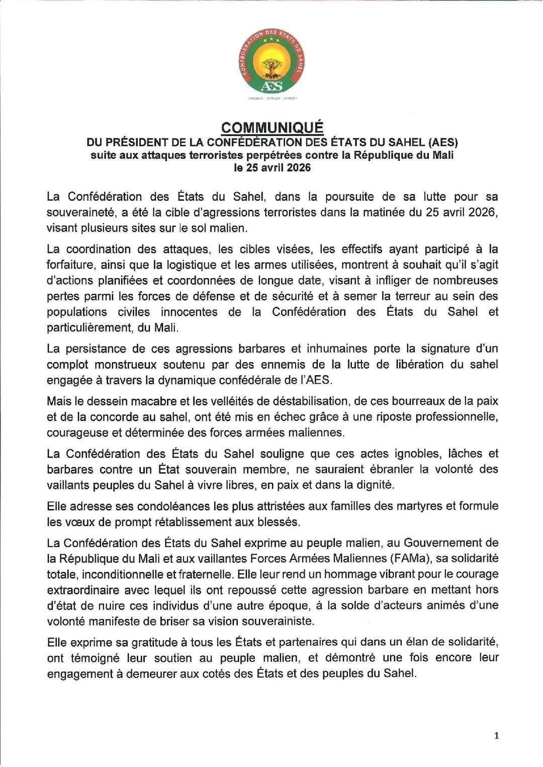 Attaque terroriste au Mali : la Confédération des États du Sahel apporte son soutien au peuple et au gouvernement malien